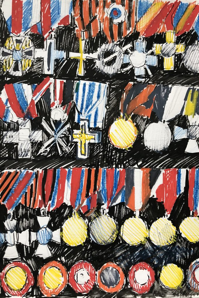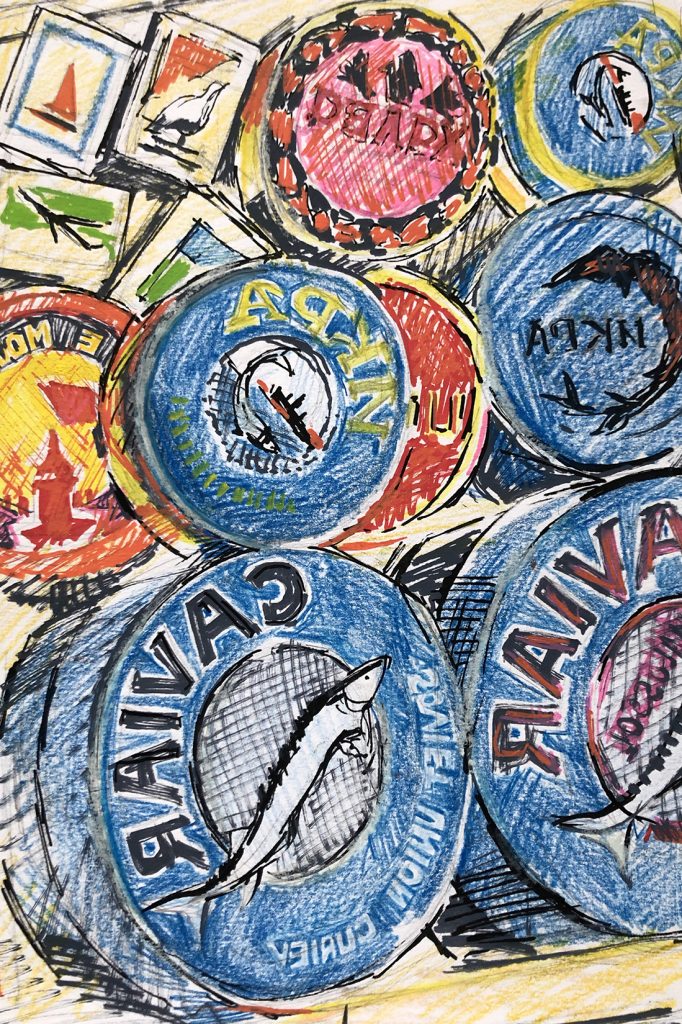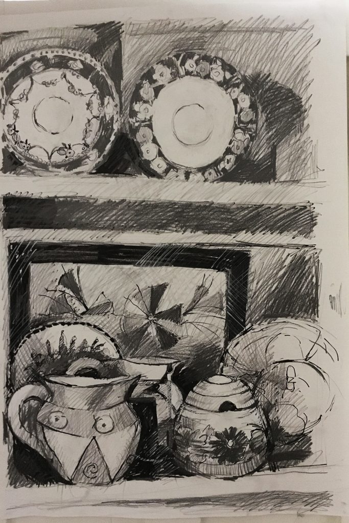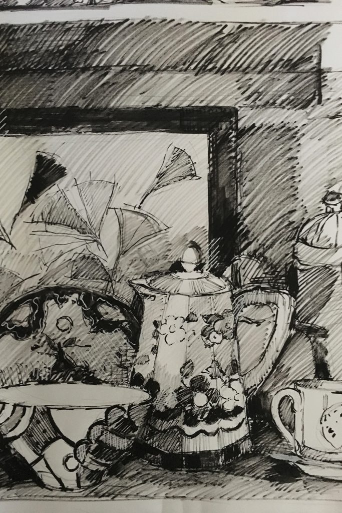 Drawing for Lino Print Grandmothers Coloured Coffee Set