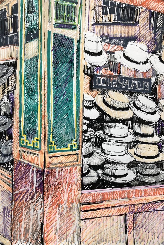 Drawing for Lino Print, Dolce Gabbana shop window New York