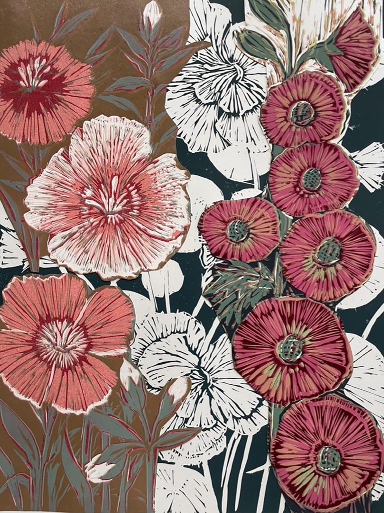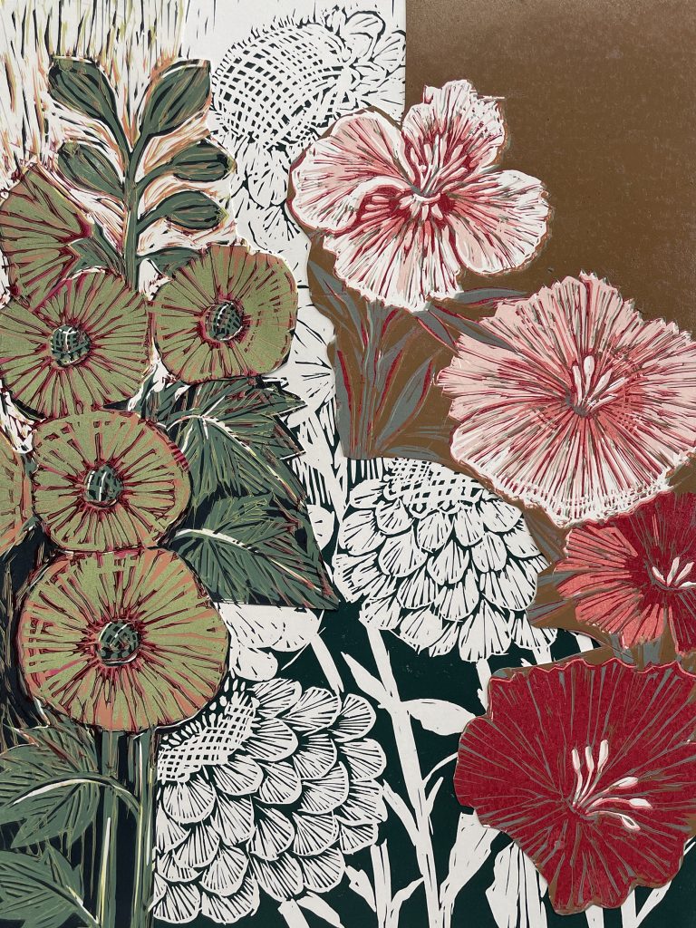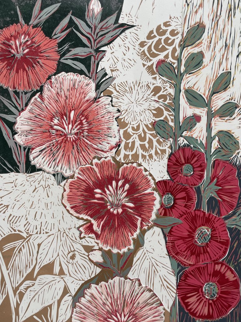 Floral Mix No 4 Lino Print Collage 30×40 cm