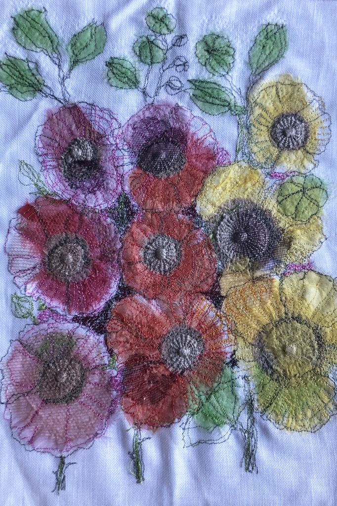 Linen and organza stitched picture